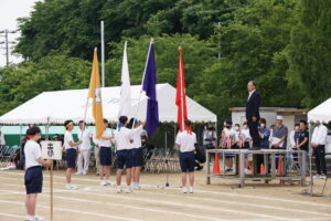 6月8日(木)に本校グラウンドにて令和5年度の運動会が行われました。今年は、コロナウイルスの規制が緩和されたことから、競技数を増やし、来賓や保護者の方々など多くの人に来ていただき、盛大に開催することができました。応援合戦も復活し、各団熱の入った応援に以前のような活気のある運動会になりました。