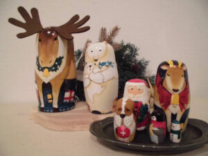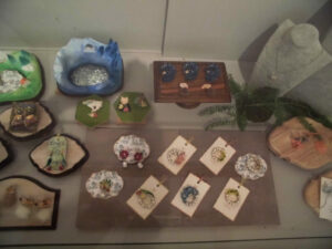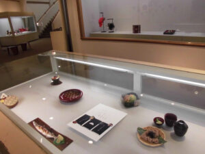漆工作品や、かわいらしい動物 植物をモチーフとした飾り物やアクセサリーなどを展示。クリスマスツリーのとなりの特大ショーケースの中はクリスマスムード一色に飾り付けをされ、撮影スポットとなっています。