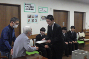 【土木環境科】ミラコンチーム“Connection”石川県能登の介護施設に製作品を贈呈