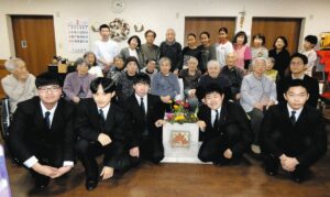 贈呈式では、施設の方々との出会いから生まれたコンクリユースプランターに込められた復興への思いを紹介し、あわせて感謝状が授与されました。プランターにはゼラニウムやシクラメンが丁寧に植えられ、色鮮やかな花々が施設にやさしい彩りを添えました。利用者の皆様の笑顔が広がり、心温まるひとときとなりました。