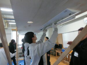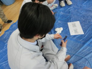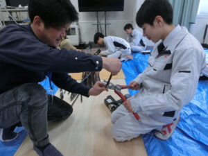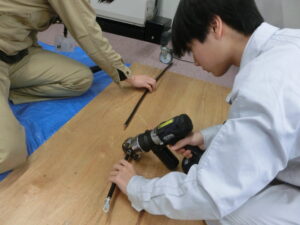 次に3つの班に分かれてそれぞれの場所で工事体験をしました。