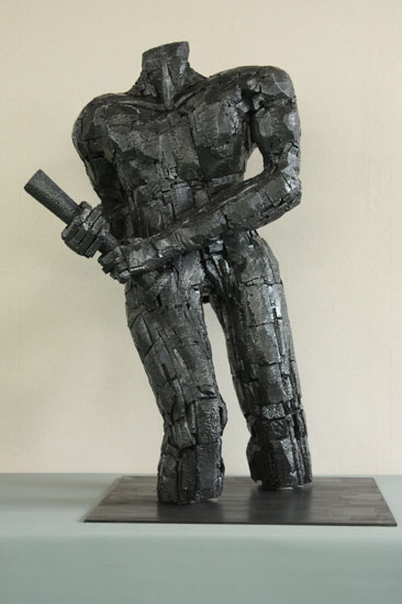 青井大賞「最後の一振り」荒谷 野乃香 発泡スチロールを素材にして、人体をこつこつと接着剤で貼りつけた作品。部分だけでなく全体のバランス、動き、リズムなどを表現し、鑑賞する人の心を惹きつける力強い力作である。