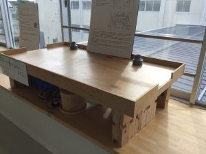 ゲームセンターで見かけるようなエアホッケーを製作中です。エアホッケーの台は概ね完成したので、今後は電気的な部分の製作に取りかかります。 |
