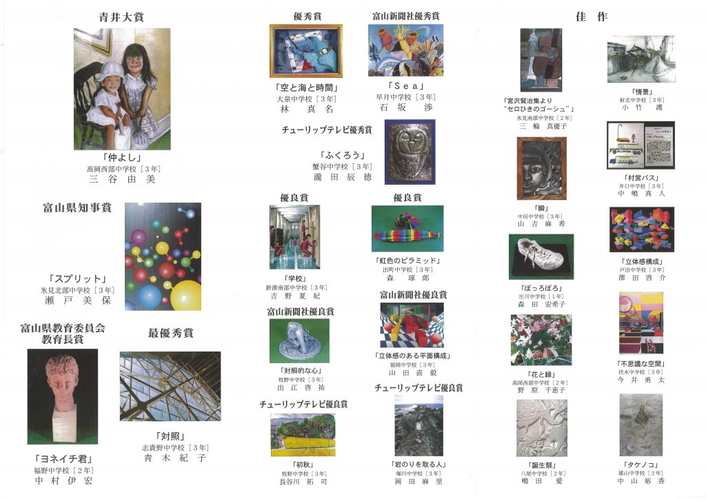 第6回 青井中美展 2003年4月1日 青井中美展 青井記念館美術館 by 投稿者. 第6回 青井中美展 ※画像をクリックすると詳細画面(PDF)が開きます ごあいさつ 青井中美展審査評 絵画部門 彫刻・工芸部門 デザイン部門 前の記事 次の記事